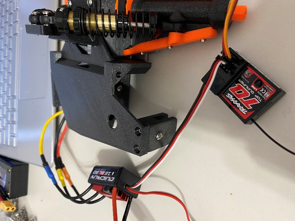 Rear Axle pictures.  On the left is the assembly before the shocks are installed.  The picture of the right is after the shocks are installed and with the speed controller and receiver wired.  I am fairly new to R/C and had to learn how to connect a brushless motor and speed control.   There were a few differences from a brushed motor and controller.
