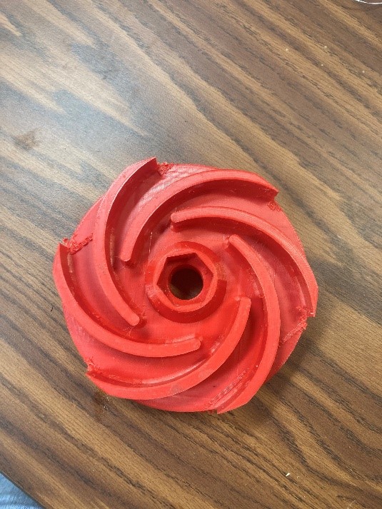 The Turbine was designed by Tyler and printed on the Boca Bearings 3D printer. There were 2 turbines printed in order to have a back up should the first break or malfunction.