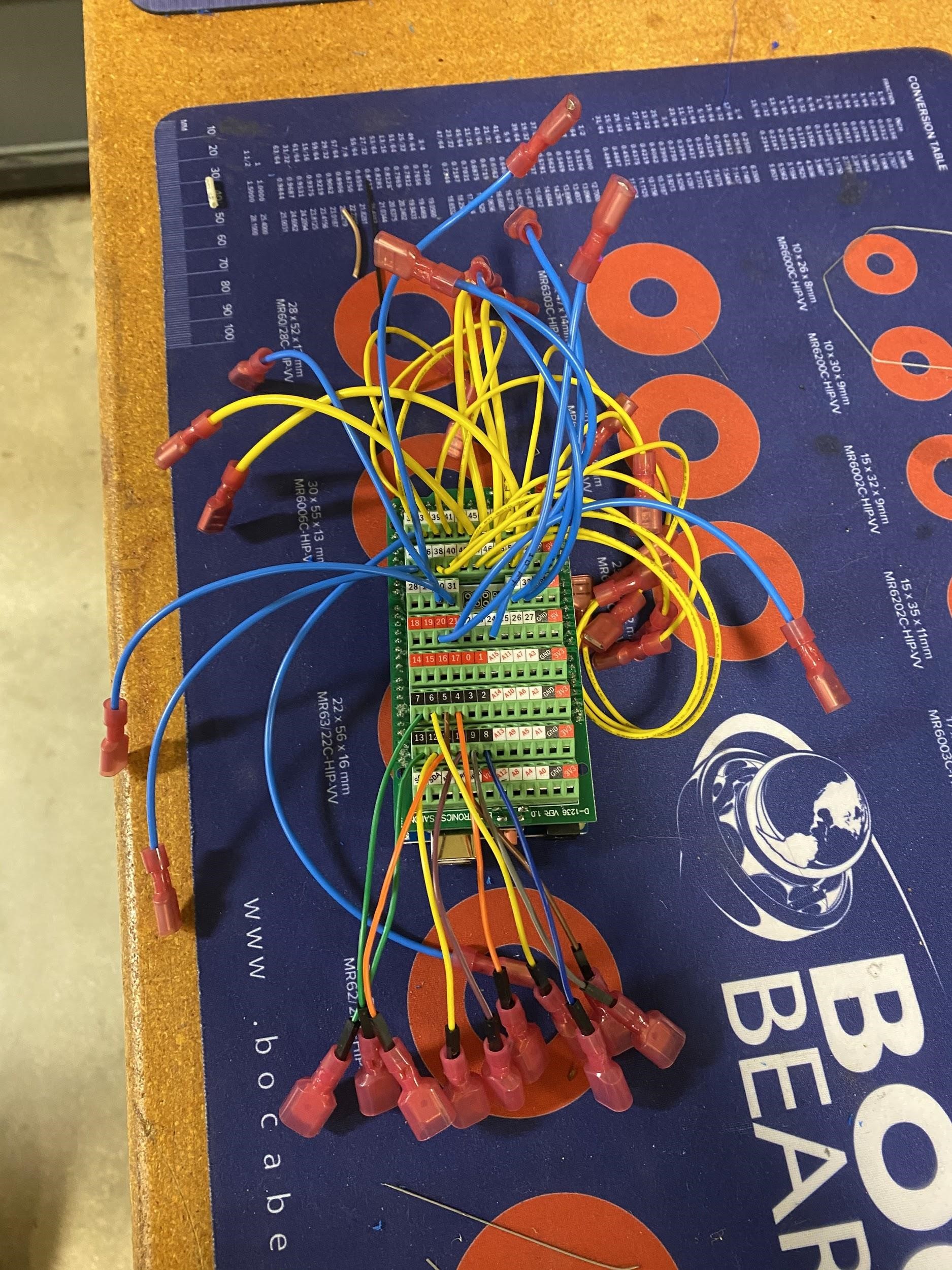 To start, one of the big things I was trying to do with the pinball machine, the scoring system, had to be abandoned. The abandonment of this was due to the fact that try as I may there were so many shorts in the arduino shield and my coding ability to debug this is lacking. While I wish this were something that could be added in, it is beyond my ability to successfully implement such a thing in a reasonable time frame. As you can see in the images below there are a ton of tiny whires that even if they arent shorting directly somewhere there's a very real possibility that the current going through each wire is causing edie currents that would cause false reads in the system and short of massive amounts of shielding or a well designed PCB I have no good way of solving this