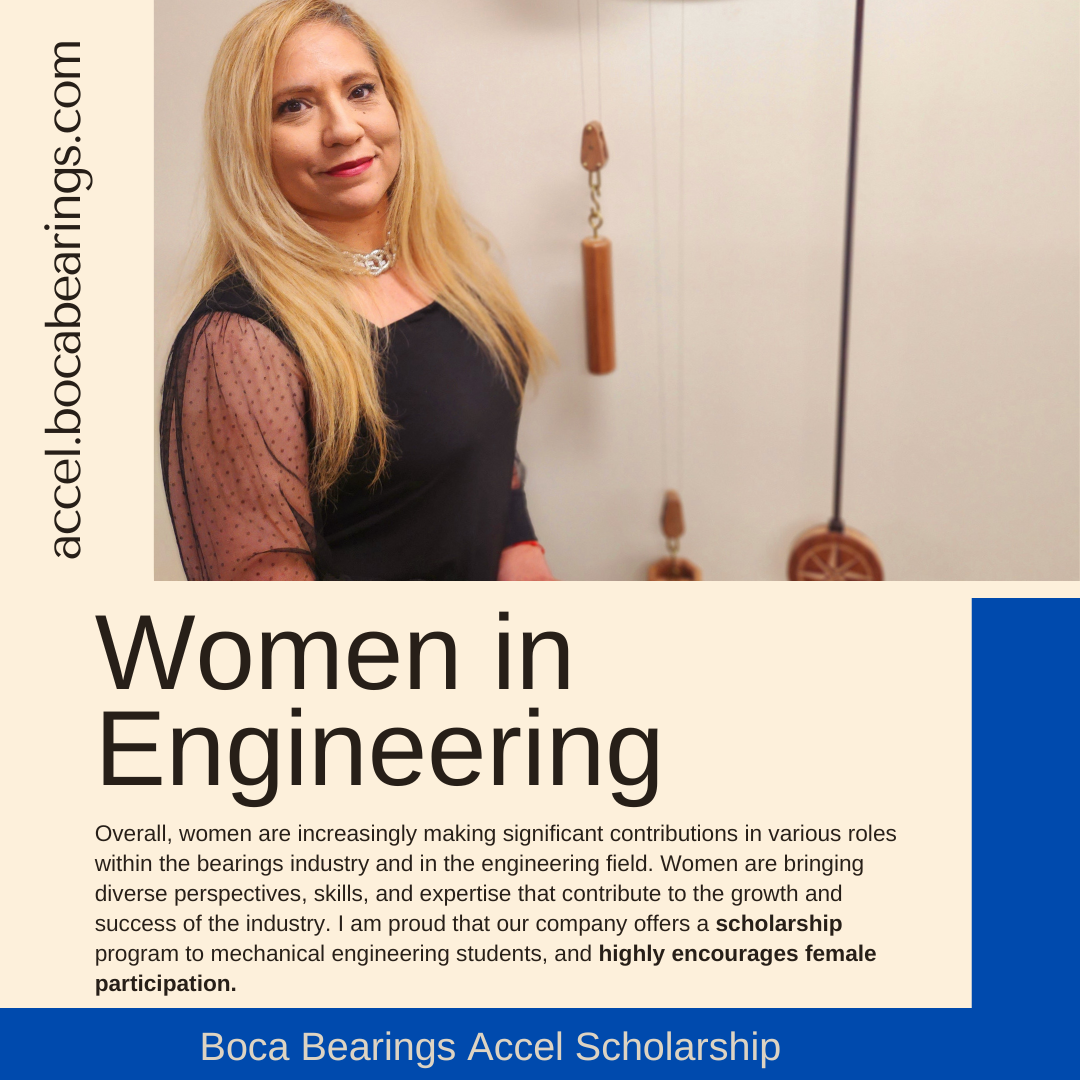Overall, women are increasingly making significant contributions in various roles within the bearings industry, bringing diverse perspectives, skills, and expertise that contribute to the growth and success of the industry as a whole. Therefore, the future looks brighter and brighter for the next generation of women. I am very happy to work for a company such as Boca Bearings that not only highlights women but also financially contributes to their development. Last year the Boca Bearings company, via their Accel Scholarship Program, provided five scholarships to 5 female mechanical engineering students. This contribution will have a ripple effect shortly. Boca Bearings also invest in a yearly Breast Cancer Awareness Month to raise awareness about breast cancer in both men and women. Initiatives of this nature will assist in women having more seats at the science/engineering and bearing industry tables.