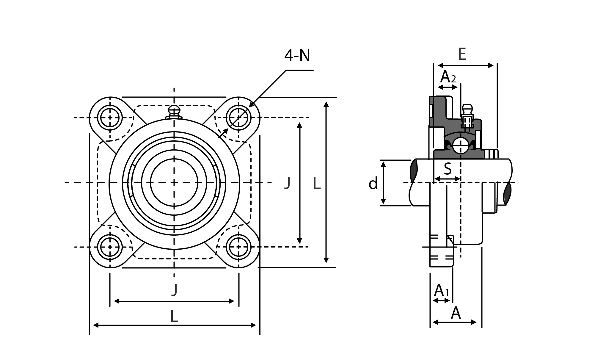 White Thermoplastic Pillow Block Housing with Stainless Steel Insert,S-UCFP207-23 (36.485MM) 1-7/16" BORE- Product Specifications